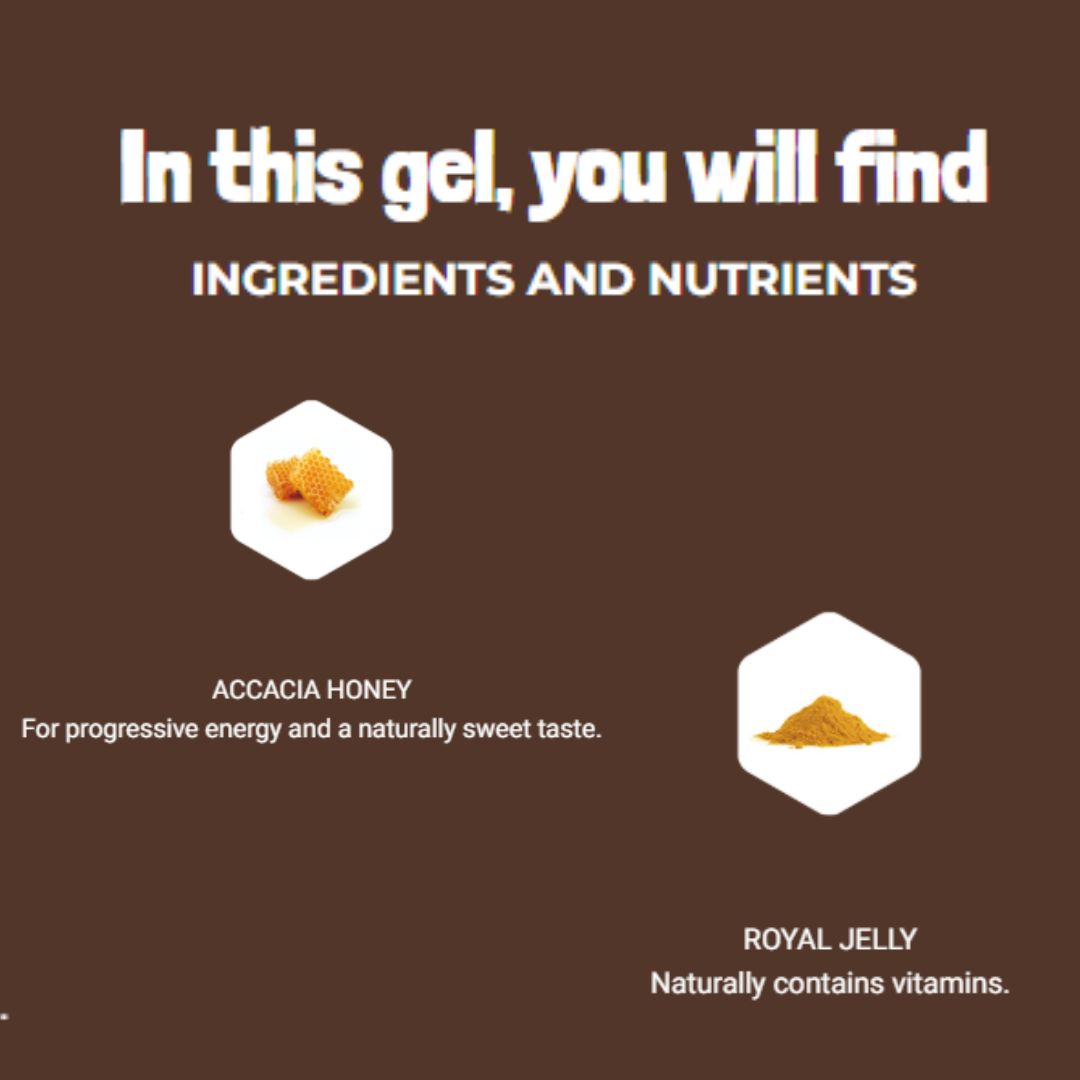 A real sensation of intense freshness with a naturally sweet and powerful taste combining the virtues of organic honey, green propolis and organic royal jelly sublimated with essential oil of peppermint for sports sessions full of sensations and a real shot of freshness that will revive the energy of your body during the effort! A progressive energy and a real freshness effect!