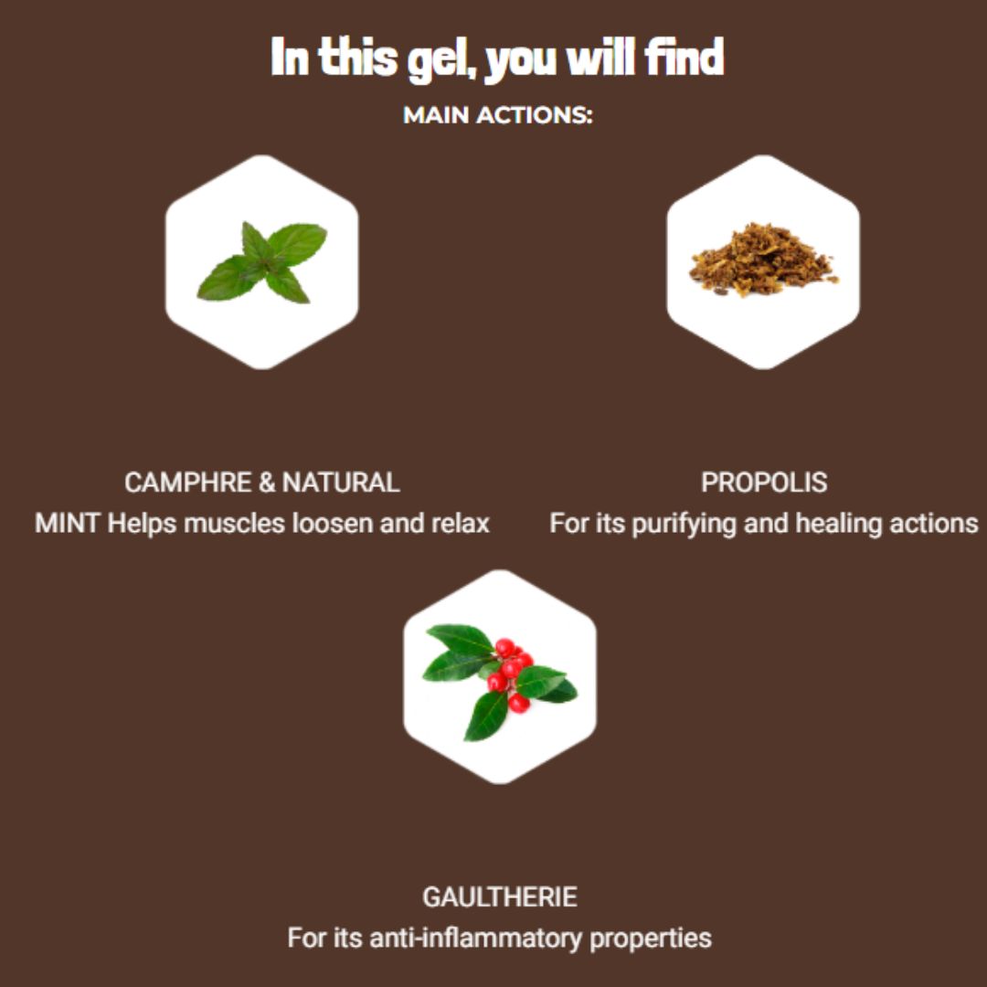 Our new cryo effect recovery gel is a natural choice for athletes looking to optimize their recovery after exercise. Thanks to its immediate cold effect, it relieves muscle pain. Composed of natural active ingredients: camphor, natural menthol, propolis, horsetail and essential oils, it also promotes muscle relaxation for faster and more effective recovery.