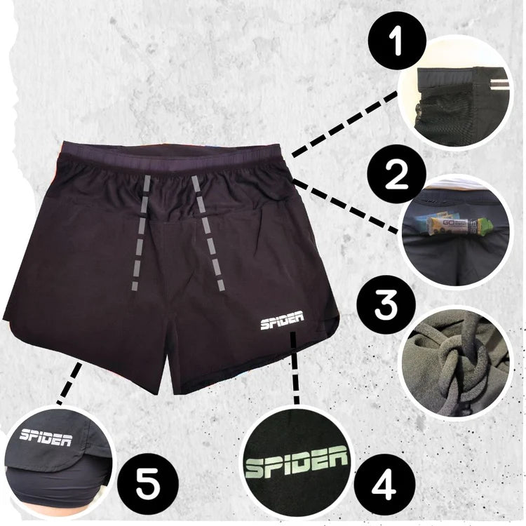 SPIDER -【Men】2 in 1 Multiple Functional Running Shorts - Black