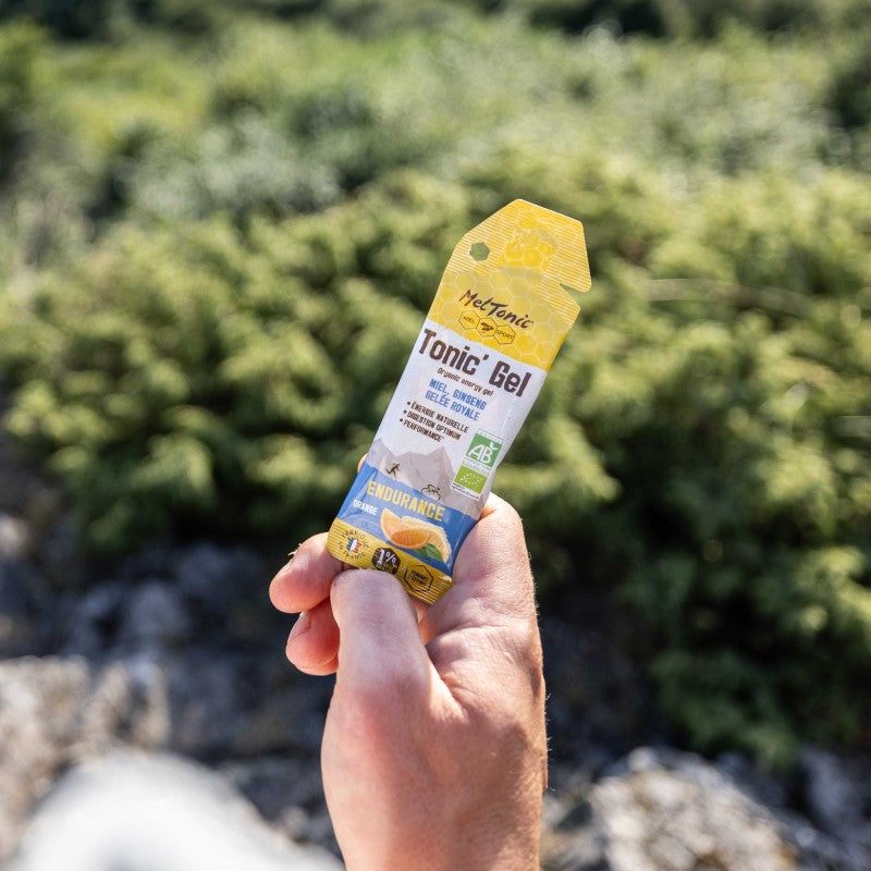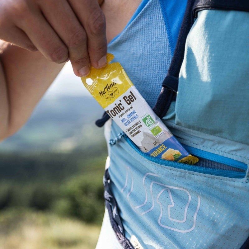 為了優化運動過程中的能量補充,每 45 分鐘消耗相當於一包有機超耐力凝膠(含蜂蜜、薑黃和蜂王漿)。在攝取有機超耐力凝膠後,選擇等滲(能量)飲料或水來進行補水和促進消化。