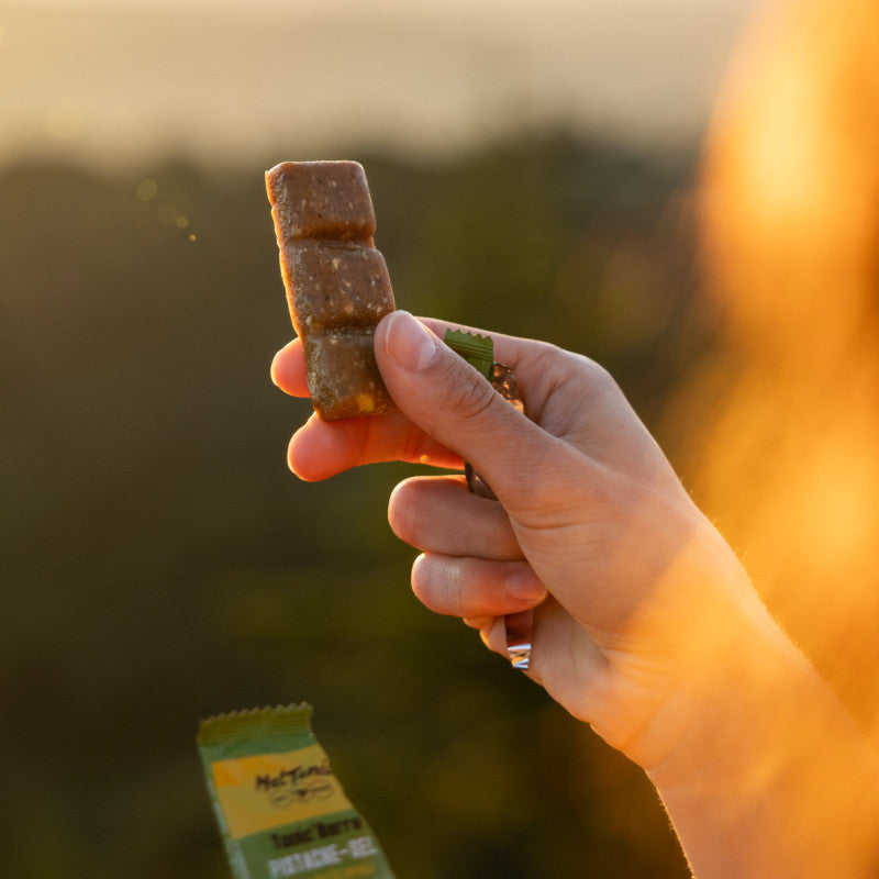 有機能量棒(蜂蜜、開心果和蓋朗德鹽)將幫助你在自然賽事(如自行車、越野跑等)和競技場上的表現(如馬拉松、雙項賽和三項賽)中迎接挑戰。有機能量棒專為運動員設計,輕巧易攜。Meltonic 為你提供充滿身體和味覺感受的運動時光!